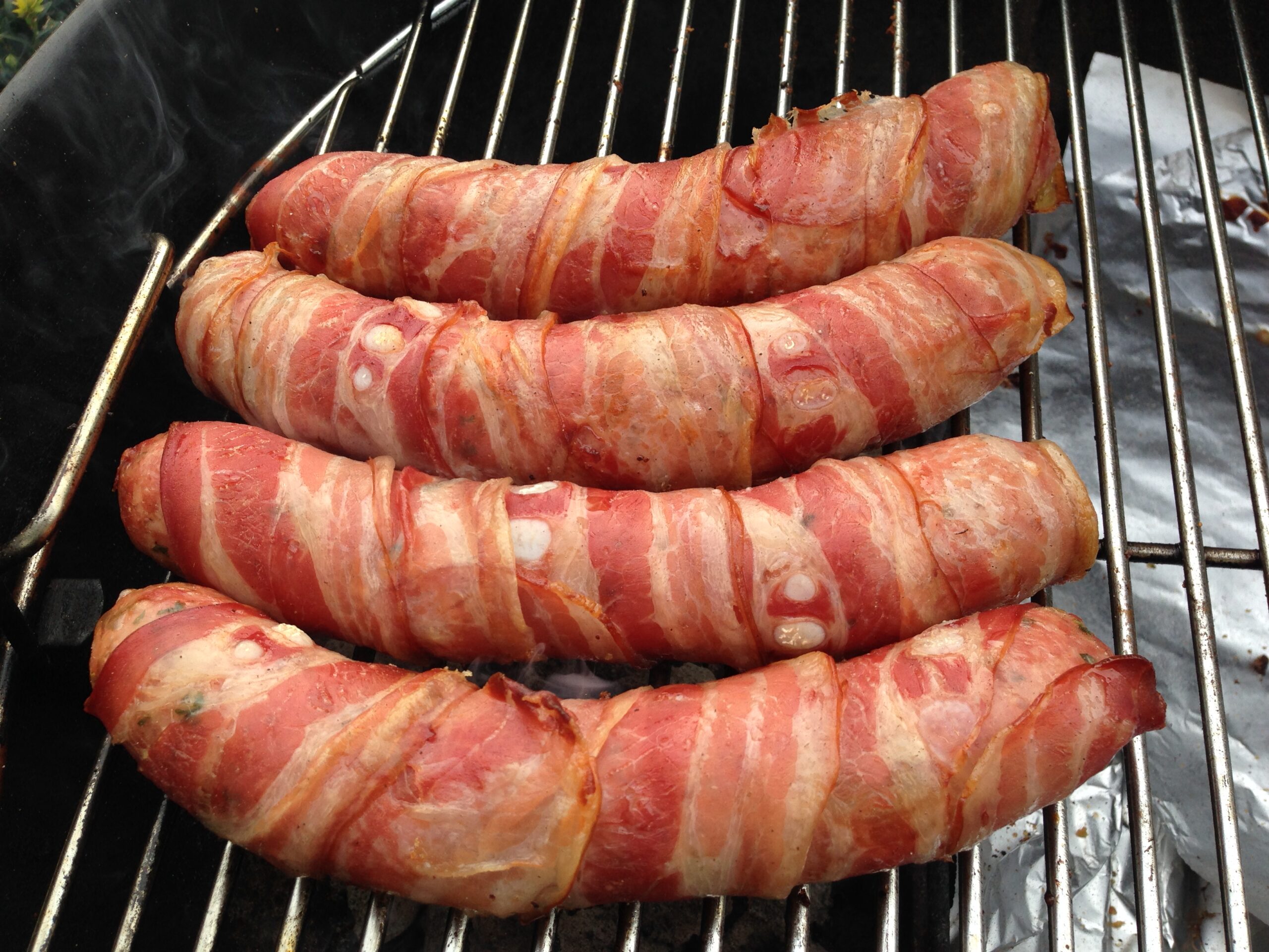 Een andere klassieker die ik jullie niet wil onthouden is de worst met spek. Een goeie simpele boerenworst omwikkeld met spek. Meer moet dat niet zijn. Het smaakt goed en het spek maakt het krokant.